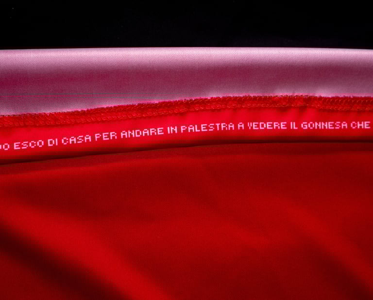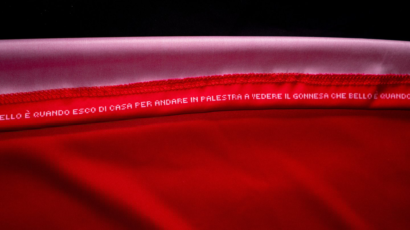 All'interno dell'orlo della maglia è cucito il canto dei tifosi, simbolo della passione e del supporto incondizionato della comunità, un segno che ogni giocatore porta con sé sul campo, ricordando l’energia che li accompagna in ogni partita.